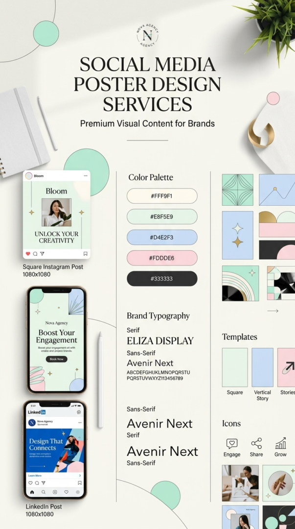 We design engaging, brand-consistent social media posts that capture attention, communicate clearly, and support your goals. Tailored for each platform, our visuals combine strong design and persuasive messaging to boost engagement and maintain a professional online presence.